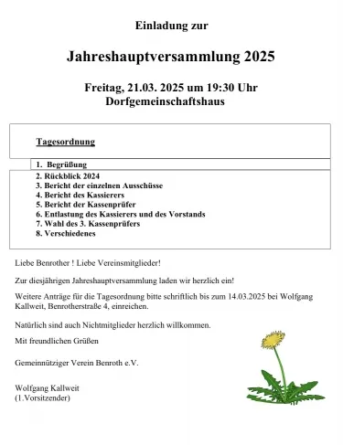 Jahreshauptversammlung Dorfgemeinschaft Wildbergerhütte Wildbergerhütte