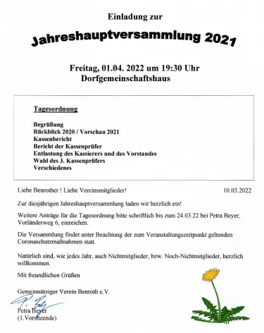 01.04.2022Aktuelles aus Benroth