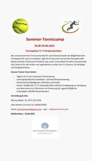 10.06.2023Es gibt noch Plätze für das Tenniscamp 2023!
